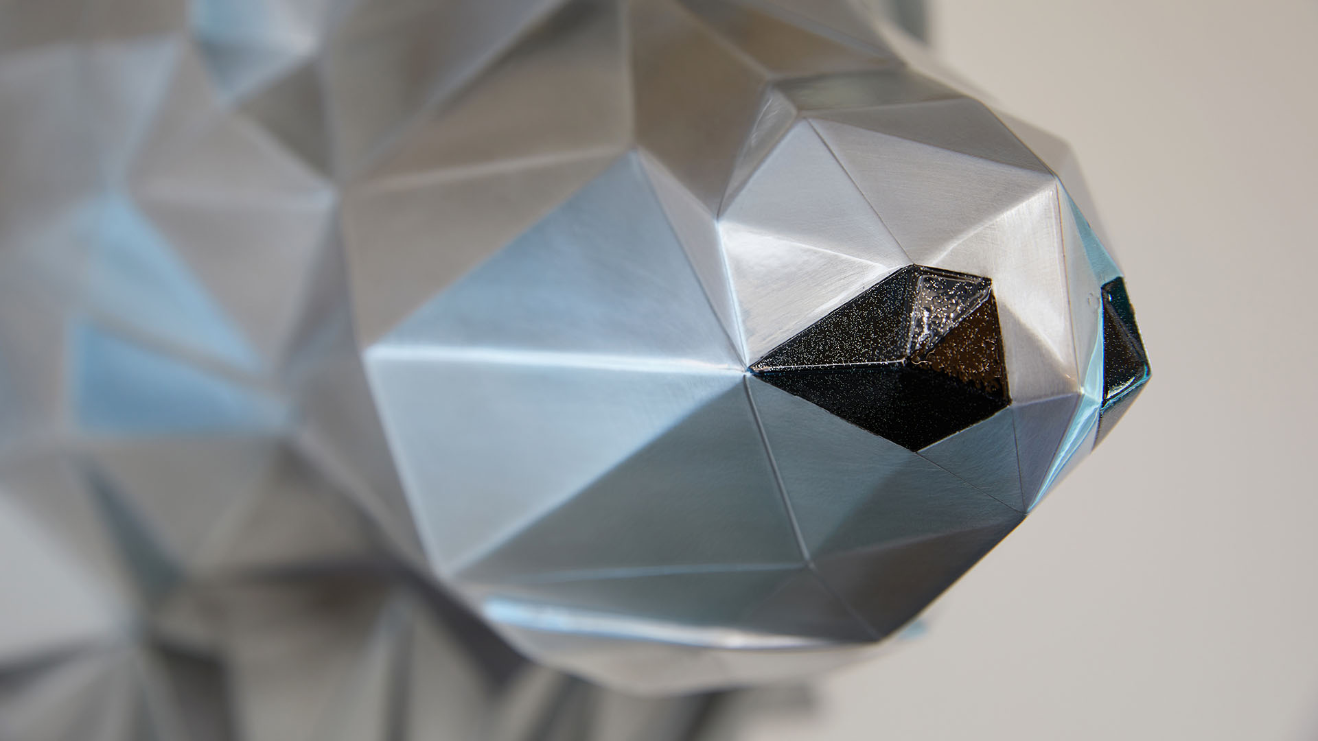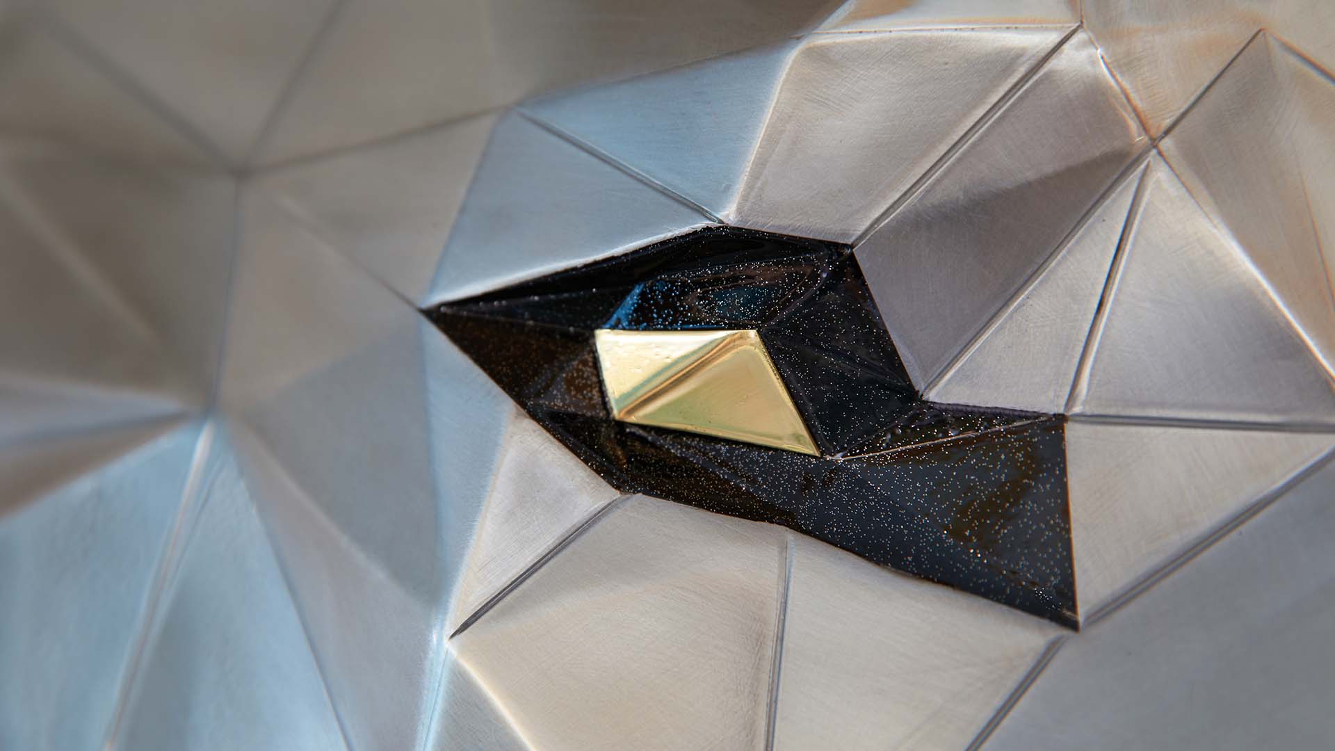 Sa symétrie parfaite, ses yeux couleur noire et laiton, ses 163 pièces soudées et pas moins de 516 facettes, pour 80 cm de hauteur, font du loup la pièce la plus détaillée à ce jour.